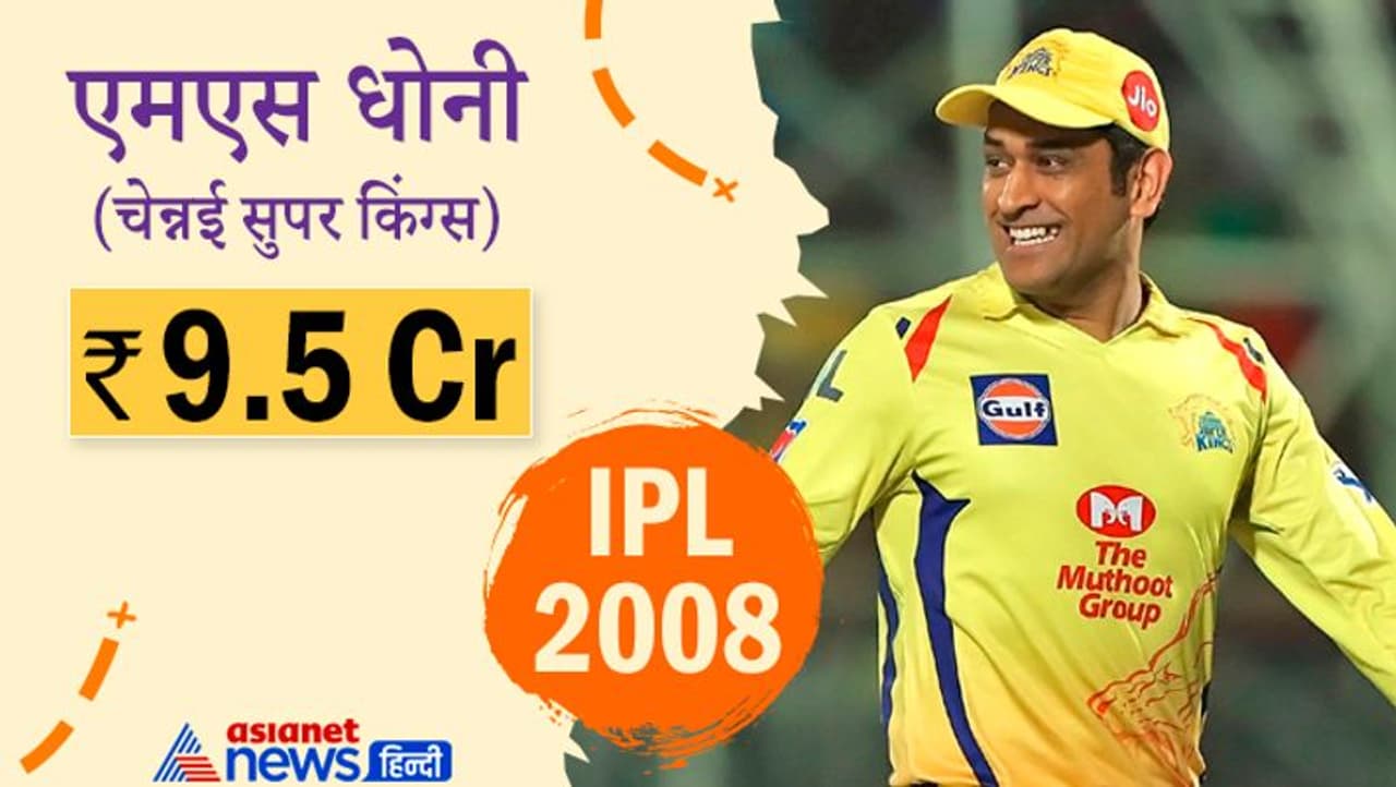 आईपीएल के पहले सीजन में भारतीय टीम के पूर्व कप्तान महेंद्र सिंह धोनी सबसे महंगे खिलाड़ी बने थे। चैन्नई की टीम ने उन्हें 9.5 करोड़ रुपये में खरीदा था। 2008 सीजन के दौरान धोनी ने 16 मैचों में 414 रन बनाए थे और सीएसके को फाइनल में पहुंचाया था, लेकिन उनकी टीम राजस्थान रॉयल्स से हार गई थी।