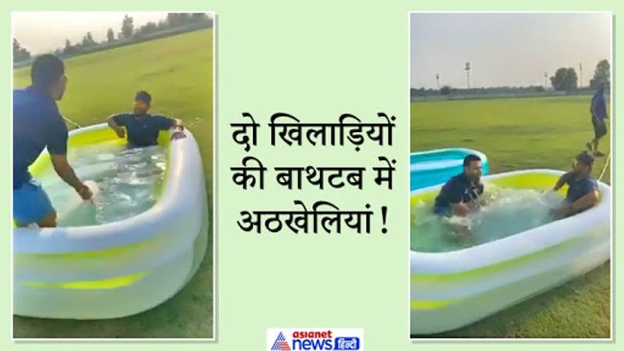 सुरेश रैना ने अपने ट्विटर अकाउंट पर एक वीडियो पोस्ट किया है, जिसमें वह एक पोर्टेबल स्वीमिंग पूल में बैठे दिख रहे हैं। इसी बीच ऋषभ पंत भी रैना के साथ पूल में इंजॉय कर रहे हैं। आपकी जानकारी के लिए बता दें कि खिलाड़ी मसल्स को रिलेक्स करने के लिए आइस बाथ लेते हैं।