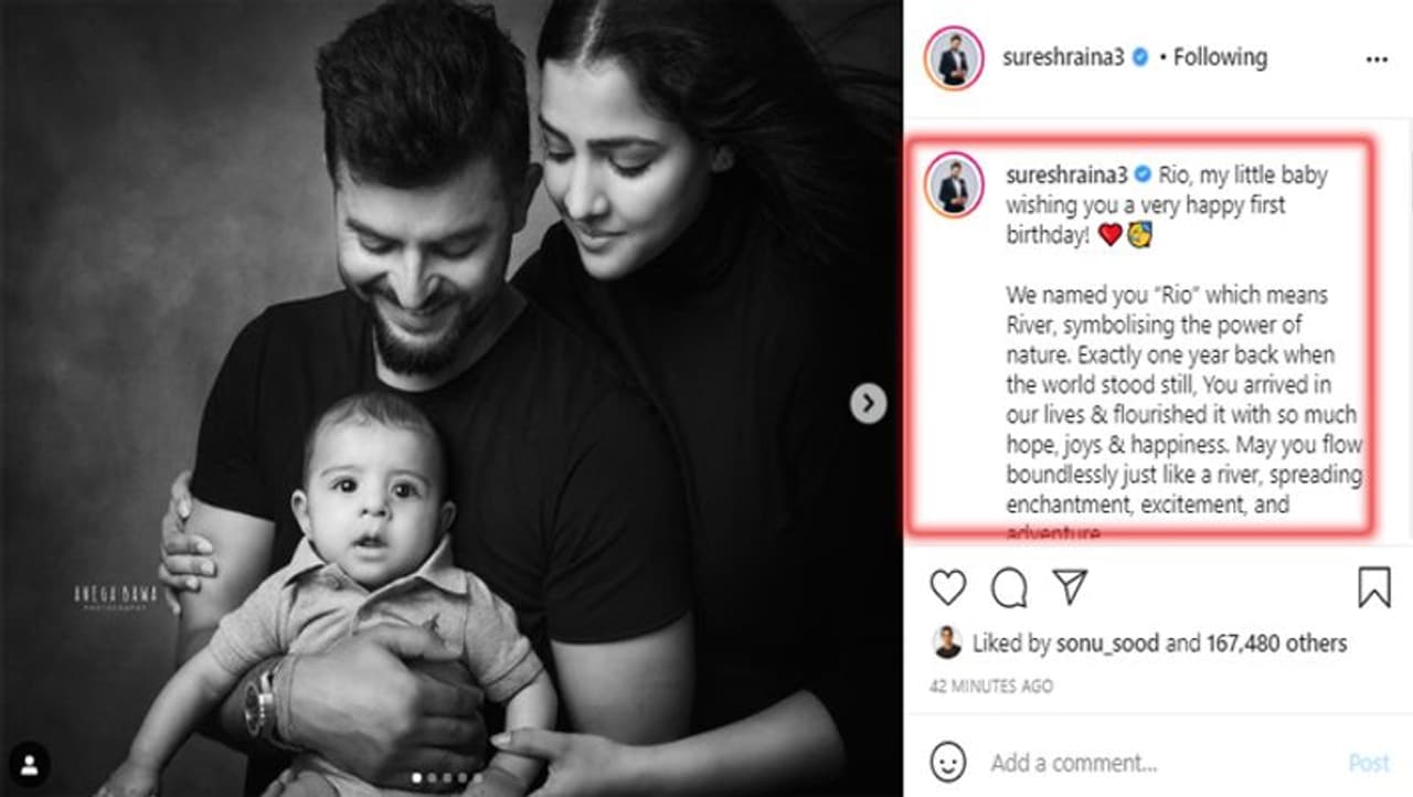 1 साल का हुआ Suresh Raina का बेटा Rio, बर्थडे पर लाडले के लिए पापा ने लिखा प्यारा मैसेज