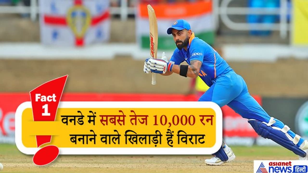 विराट कोहली वनडे में सबसे तेज 10,000 रन बनाने वाले खिलाड़ी हैं। कोहली ने सिर्फ 205 पारियों में 10,000 रन पूरे कर लिए हैं। इस मामले में कोहली के बाद सचिन तेंदुलकर और सौरव गांगुली का नाम आता है।
