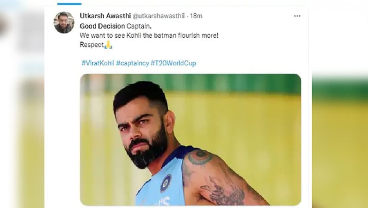 विराट कोहली के टी20 की कप्तानी का पद छोड़ने के फैसले के बाद ट्विटर पर गुड डिसिजन (Good Decision) ट्रेंड करने लगा है। फैंस कोहली के इस फैसले को सही बता रहे हैं।