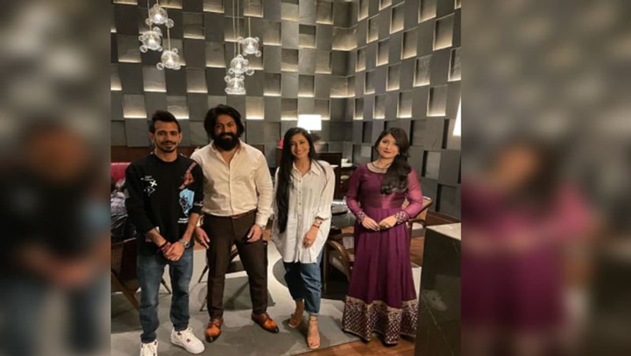 भारतीय टीम के स्टार स्पिनर ने सोशल मीडिया पर एक तस्वीर शेयर की है और उसमें वो और उनकी पत्नी धनाश्री वर्मा कन्नड़ फिल्मों के सुपरस्टार यश के साथ नजर आ रही हैं।
