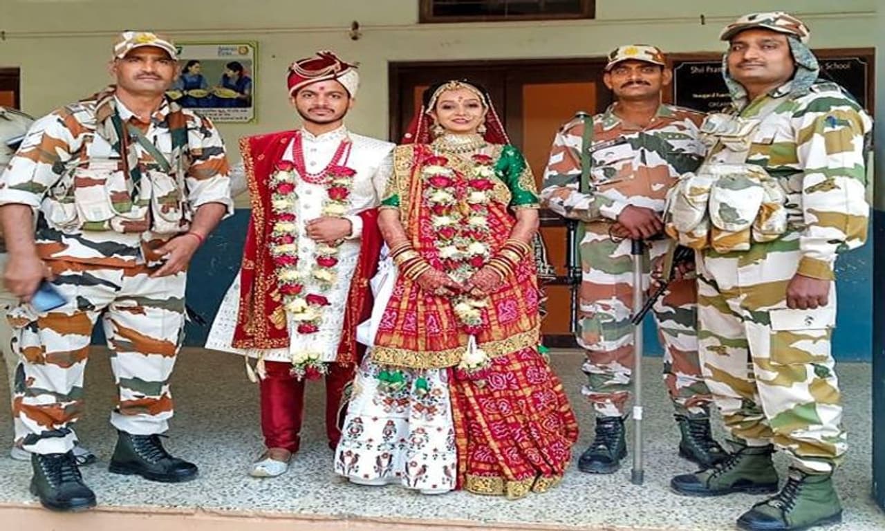 यह तस्वीर गुजरात के भुज जिले की है, जहां नवविवाहित जोड़ा शादी के तुरंत बाद वोट देने पोलिंग बूथ पर पहुंचा।