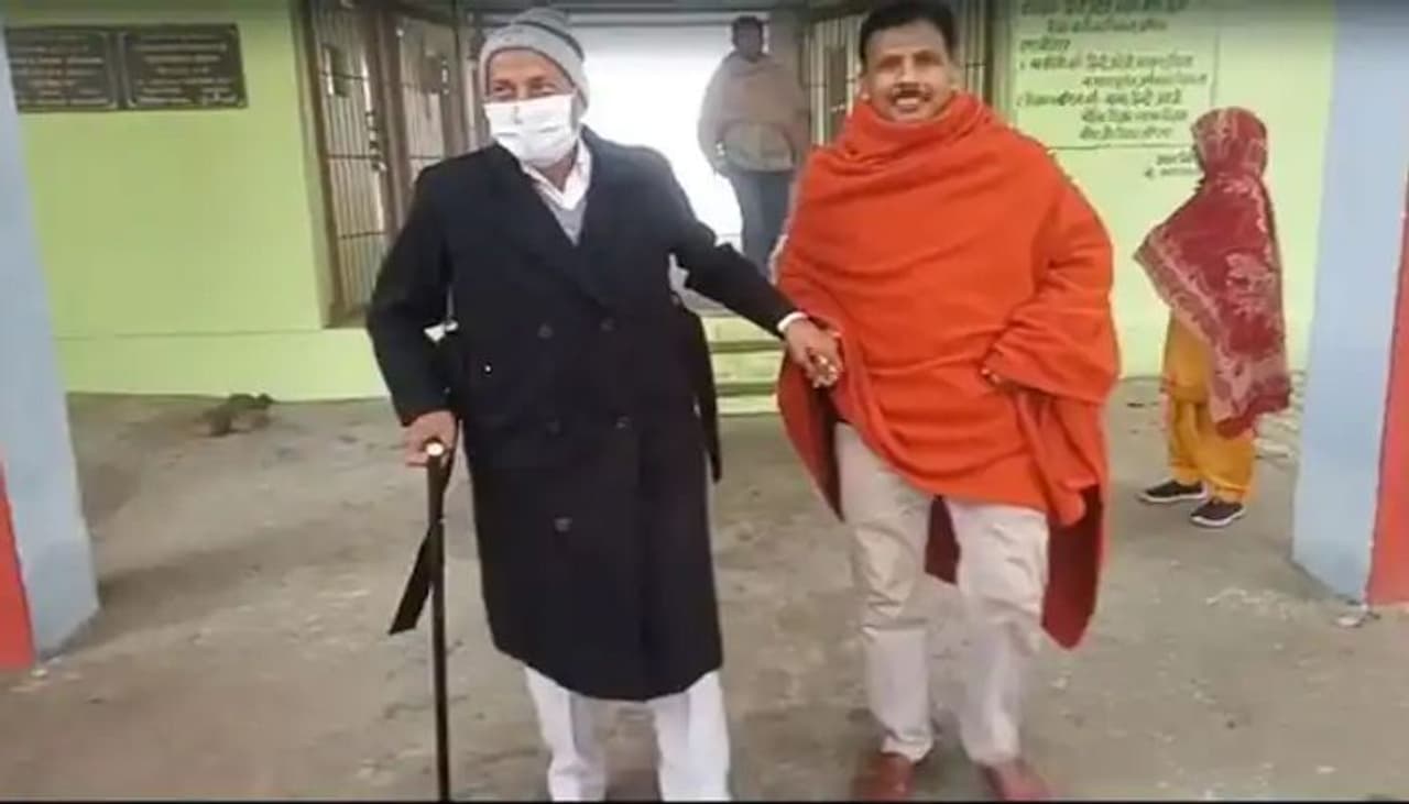 आगरा के एत्मादपुर में जनता इंटर कॉलेज में बने पोलिंग बूथ पर गुरुवार की सुबह कड़ाके की सर्दी में दिव्यांग मतदाता ने मतदान किया।