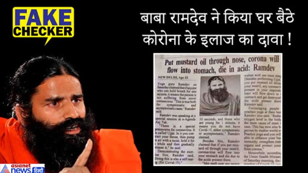 नई दिल्ली. योग गुरु बाबा रामदेव ने कोरोना की टेस्टिंग और इलाज को लेकर चौंकाने वाली दावे किए हैं। ये सभी दावे सोशल मीडिया पर वायरल हो रहे हैं। पहला तो यह की 30 सेकंड तक सांस रोकना कोविड-19 के लिए एक स्व - परीक्षण का तरीक़ा हो सकता है और दूसरा यह की सरसों का तेल नाक पर लगाने से वह वायरस को पेट में ले जाता है जहां एसिड वायरस को ख़त्म कर देता है। कुछ लोग बाबा रामदेव के इन दावों को सही मान रहे हैं तो वहीं इन दावों पर सवाल भी उठे हैं। क्या वाकई सांस रोकने से कोविड-19 की जांच की जा सकती है? और क्या नथुनों में सरसों का तेल डालना वायरस मारने में सक्षम है? फैक्ट चेकिंग में आइए हम आपको बताते हैं कि रामदेव बाबा के कोरोना इलाज को लेकर (Baba Ramdev Coronavirus Cure Fact Check) ये नुस्खे वैज्ञानिक दृष्टिकोण से कितने फिट बैठते हैं?