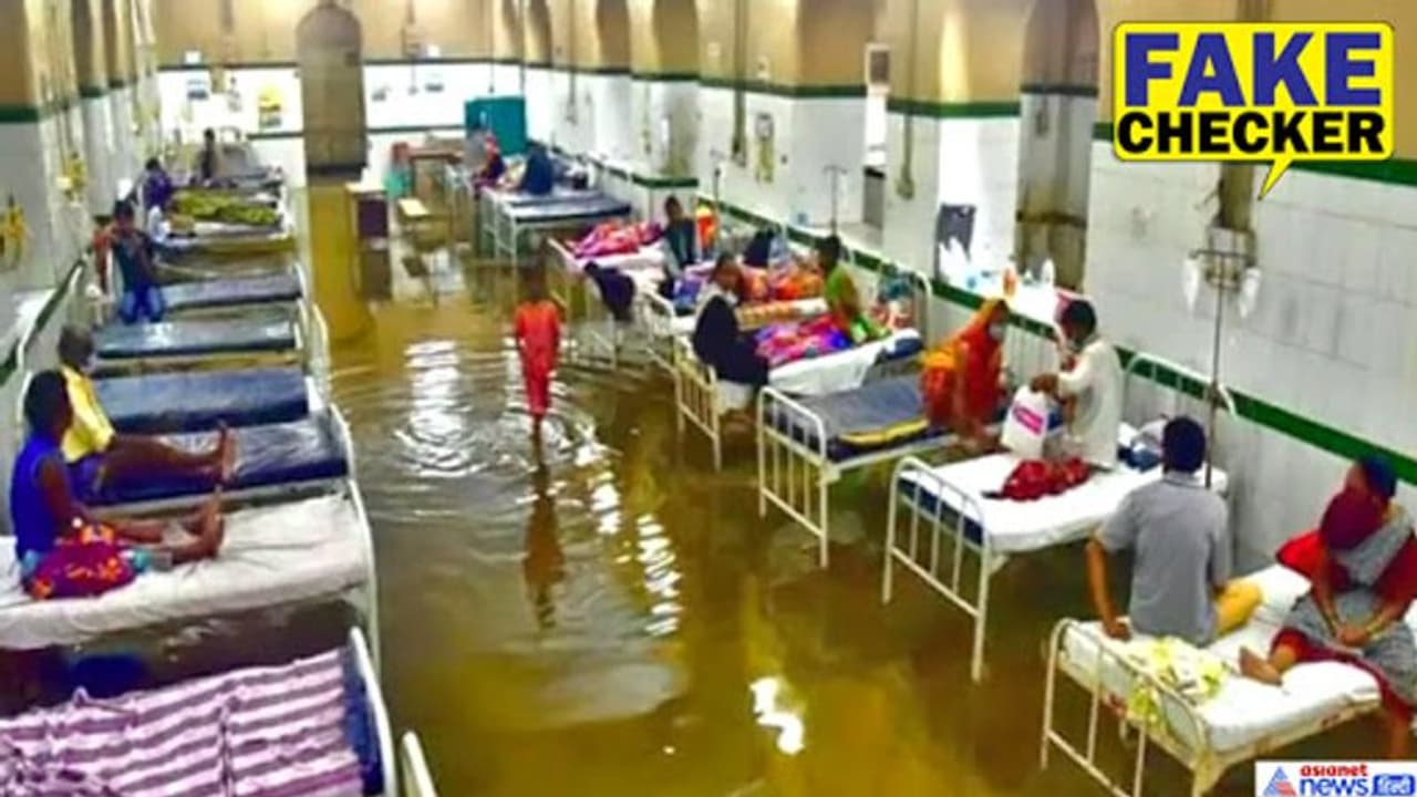 यह तस्वीर इसी तरह के दावे के साथ ट्विटर पर वायरल हो रही है। लोग बिहार के एक कोविड अस्पताल में पानी भर जाने का दावा करके ये तस्वीर शेयर कर रहे हैं।