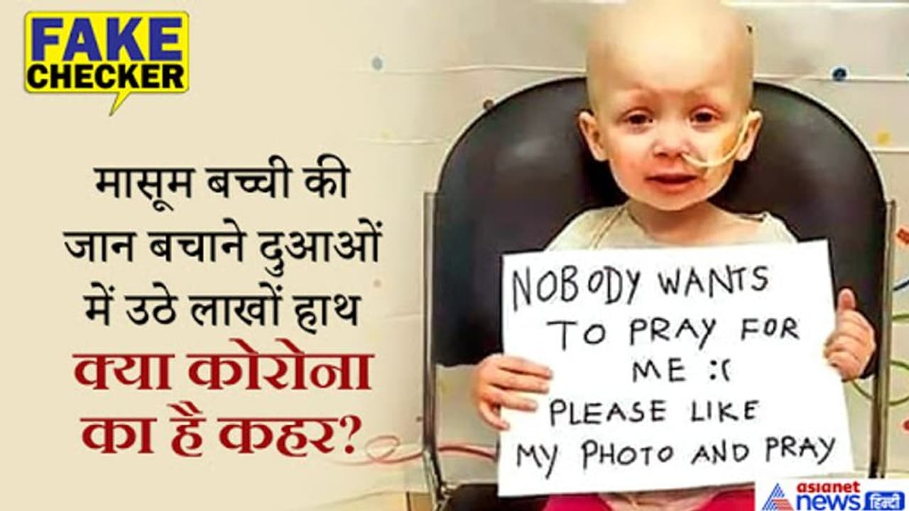 नई दिल्ली. दुनियाभर में लाखों लोग कोरोना वायरस की चपेट में आ चुके हैं। इसी बीच सोशल मीडिया पर एक छोटी बच्ची की तस्वीर वायरल हो रही है। तस्वीर में बच्ची की नाक में ऑक्सीजन पाइप लगा हुआ है और उसके सिर व भौंहों के बाल नहीं हैं. बच्ची ने हाथ में एक पोस्टर पकड़ा हुआ है, जिस पर उसके लिए दुआएं करने की गुहार की गई है। पोस्ट के साथ दावा किया जा रहा है कि बच्ची को कोरोना हुआ है। लोग बच्ची के लिए दुआएं मांगने की गुहार लगा रहे हैं। बच्ची की हालत देख हर कोई सन्न है और जान बचाने के लिए इमोशनल होकर लोग इस फोटो को शेयर कर रहे हैं। सोशल मीडिया पर एक चेन के साथ फोटो शेयर करने की अपील की गई है। फैक्ट चेकिंग में आइए जानते हैं कि क्या वाकई ये मासूम कोरोना के कहर से पीड़ित है?
