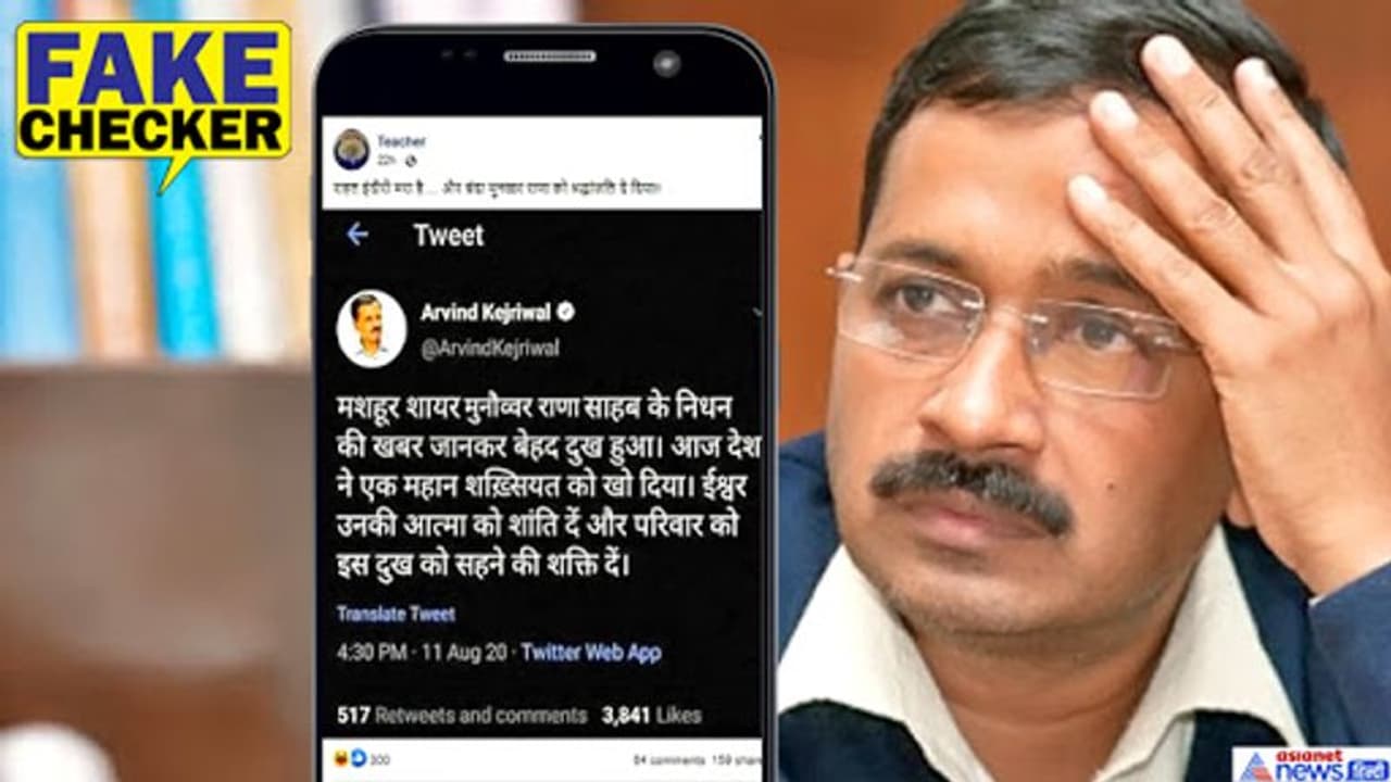 फैक्ट चेक डेस्क. CM Arvind Kejriwal fake news: मशहूर शायर राहत इंदौरी का मंगलवार को दिल का दौरा पड़ने से निधन हो गया। वे कोरोना वायरस से भी संक्रमित थे। राहत इंदौरी के निधन पर सोशल मीडिया पर देश की कई बड़ी हस्तियों ने शोक जताया। इस बीच दिल्ली के सीएम अरविंद केजरीवाल का एक कथित ट्वीट वायरल हुआ। इसके जरिये दावा किया जाने लगा कि केजरीवाल ने राहत इंदौरी की जगह शायर मुनव्वर राना को श्रद्धांजलि दे दी है। ट्वीट देखकर ऐसा लग रहा कि ये अरविंद केजरीवाल के आधिकारिक ट्विटर अकाउंट का स्क्रीनशॉट है। फैक्ट चेक में आइए जानते हैं कि आखिर सच क्या है?