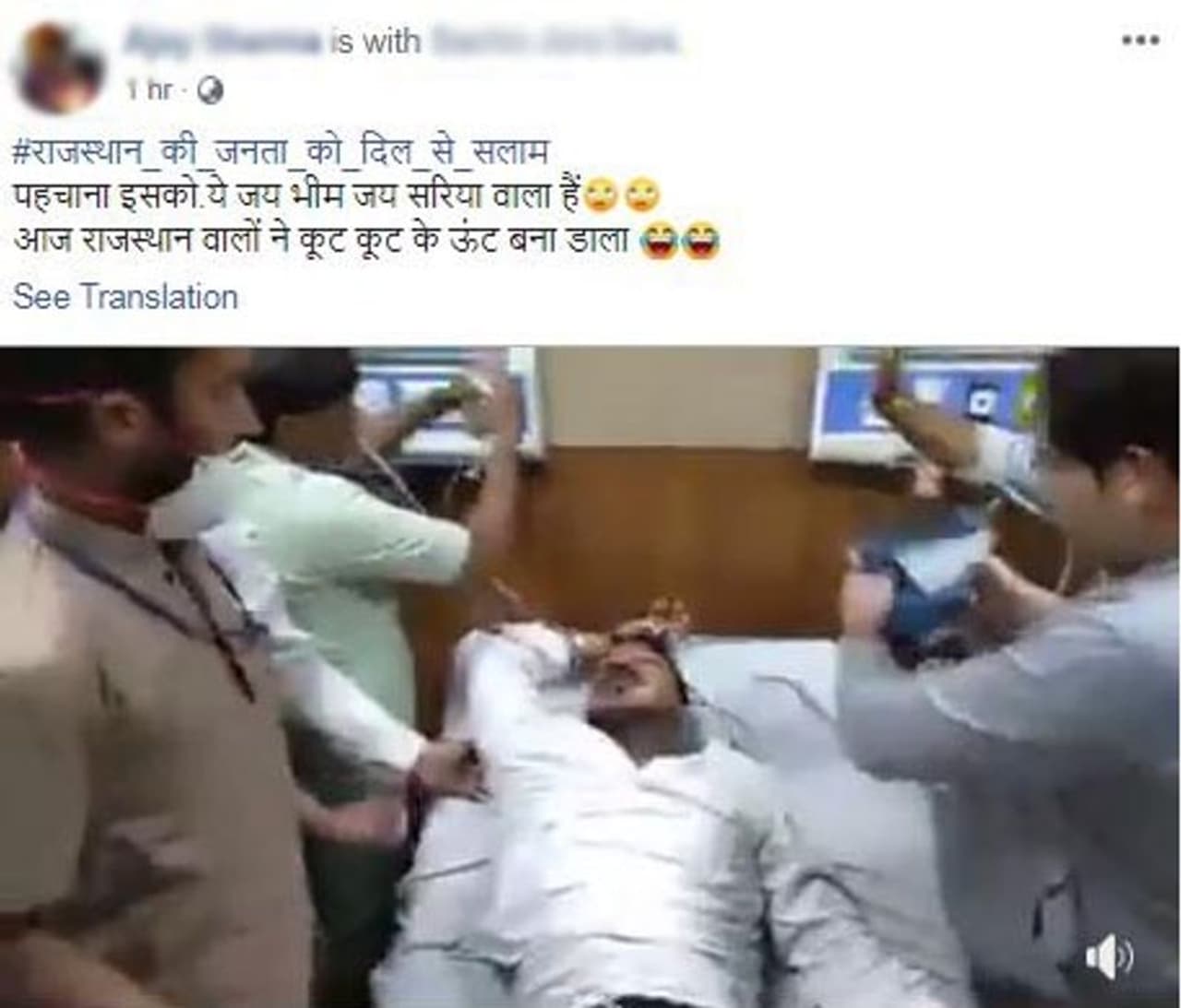 क्या है दावा? सोशल मीडिया पर कई वीडियो और पोस्ट वायरल हो रही हैं। इनमें दावा किया जा रहा है कि राजस्थान CAA का विरोध प्रदर्शन करने आए भीम आर्मी के चीफ चंद्रशेखर रावण की जनता ने पिटाई कर दी। इसके बाद उन्हें अस्पताल में भर्ती कराया गया।