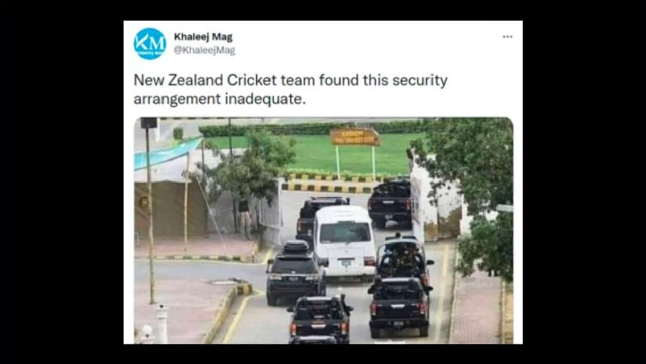 इसी घटना से जोड़कर इस तस्वीर को वायरल किया जा रहा है। इसमें दावा किया जा रहा है कि पाकिस्तान सरकार ने श्रीलंकाई क्रिकेट टीम को ऐसे सुरक्षा दी है। एक ट्विटर यूजर ने इस तस्वीर को कैप्शन के साथ शेयर किया, न्यूजीलैंड क्रिकेट टीम को यह सुरक्षा व्यवस्था कम लग रही है।