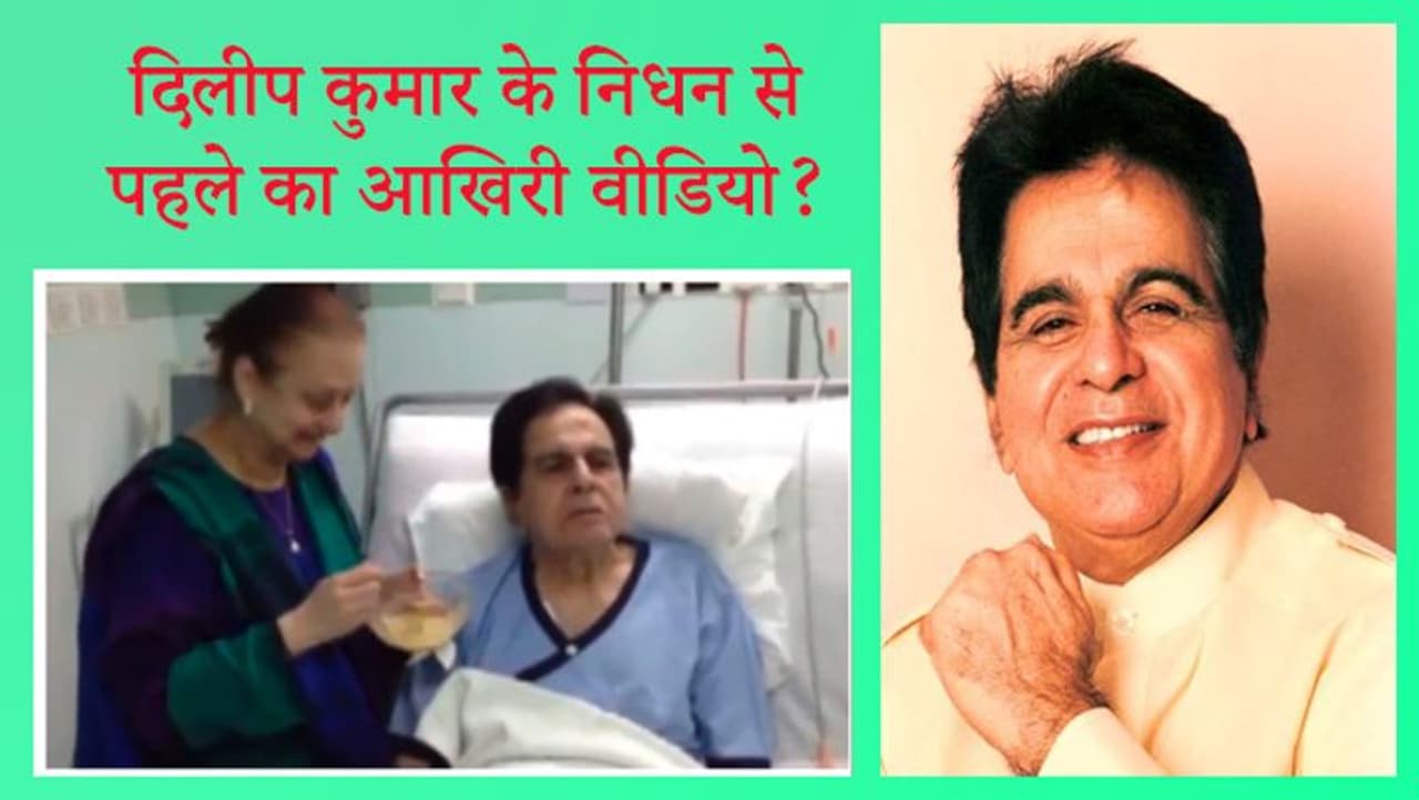 दिलीप कुमार का लंबी बीमारी के बाद मुंबई के एक हॉस्पिटल में निधन हो गया। 2 मिनट 13 सेकंड के वायरल वीडियो के साथ कैप्शन लिखा है, दिलीप कुमार का हॉस्पिटल के अंदर का आखिरी वीडियो। सायरा बानो जी उन्हें खाना खिला रही हैं।