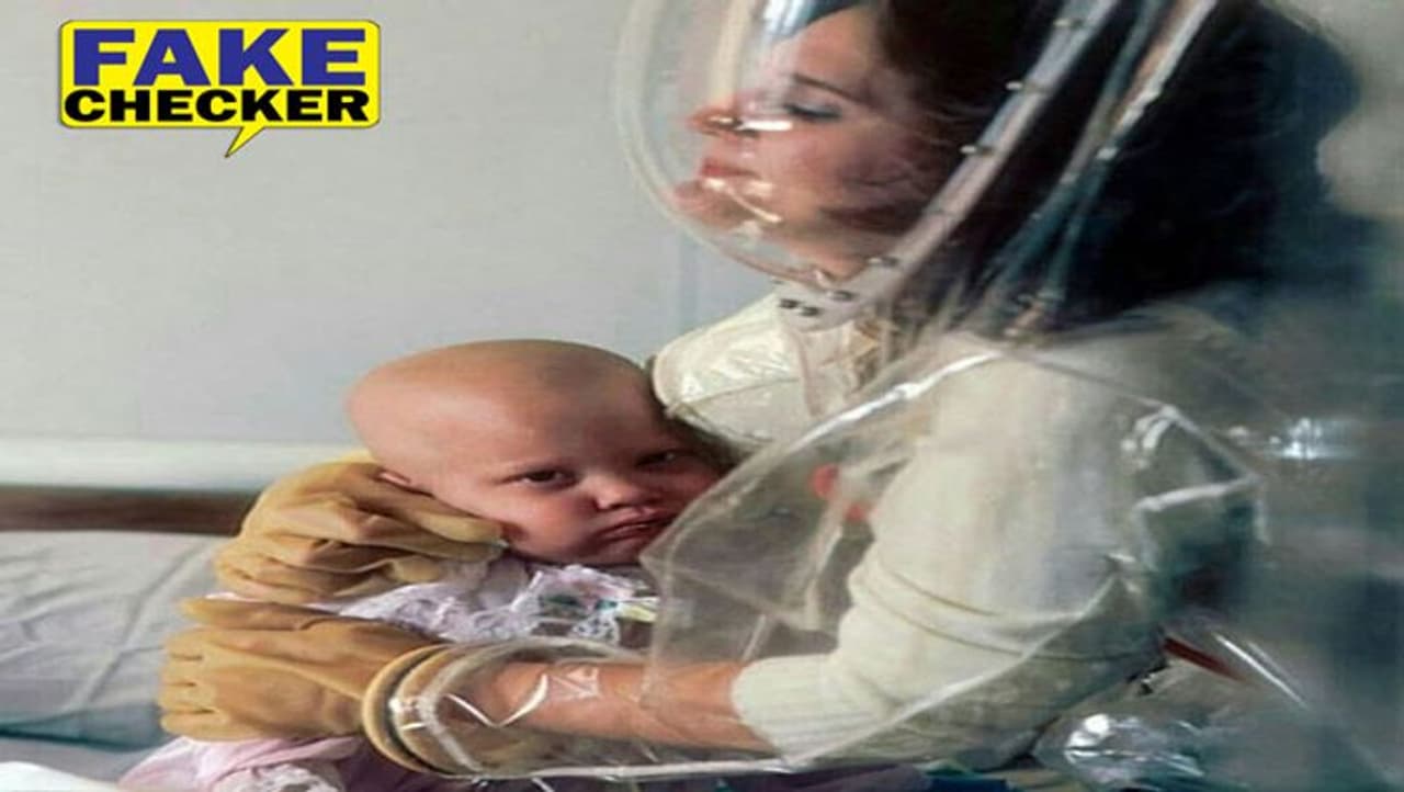 तस्वीर को वाशिंगटन के फ्रेड हचिंसन कैंसर सेंटर का बताया गया है। वेबसाइट के मुताबिक, ये तस्वीर 1985 की है। बच्चा लेमिनार एयर फ़्लो रूम में है जिस वजह से मां ने प्रोटेक्टिव गियर पहना हुआ है। बच्चे के इलाज में उसका बॉन मेर्रो ट्रांस्पलेंट होने वाला हैं।