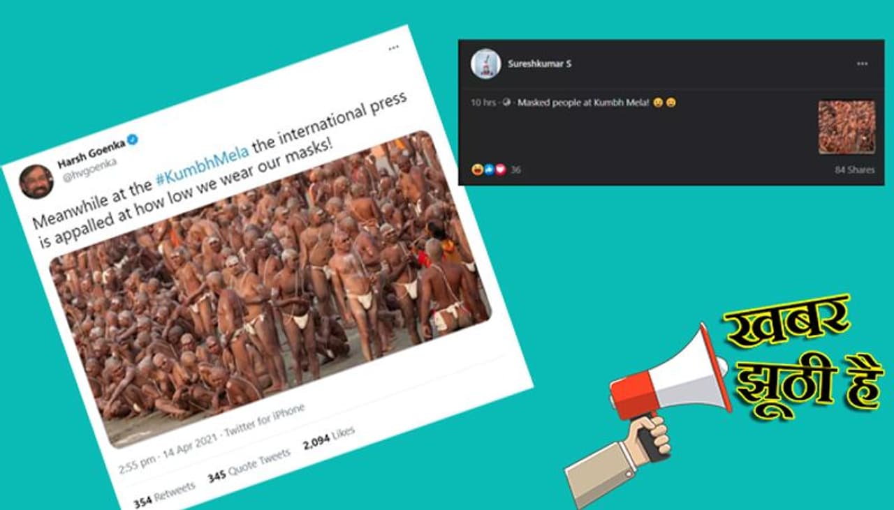 कोरोना महामारी के बीच हरिद्वार में लगे कुंभ से जुड़ी कई तस्वीरें सोशल मीडिया प्लेटफॉर्म पर वायरल हो रही हैं। तस्वीरों में कुछ सही हैं तो कुछ कई साल पुरानी किसी दूसरे जगह की हैं। ऐसी ही एक वायरल तस्वीर के बारे में बताते हैं, जिसमें ढेर सारे साधुओं को स्नान करते हुए दिखाया गया है। साथ में कोरोना से जुड़ा बड़ा दावा किया जा रहा है, हालांकि ये पूरी तरह से झूठ है।