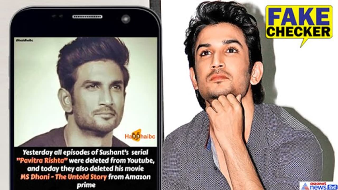 न तो सुशांत सिंह राजपूत के लीड रोल वाले सीरियल ‘पवित्र रिश्ता’ को इंटरनेट से हटाया गया है। न ही उनकी फिल्मों को। सोशल मीडिया पर किए जा रहे दावे फर्जी हैं। इस तरह इंटरनेट से सुशांत की फिल्में हटाए जाने का दावा भी झूठा है।