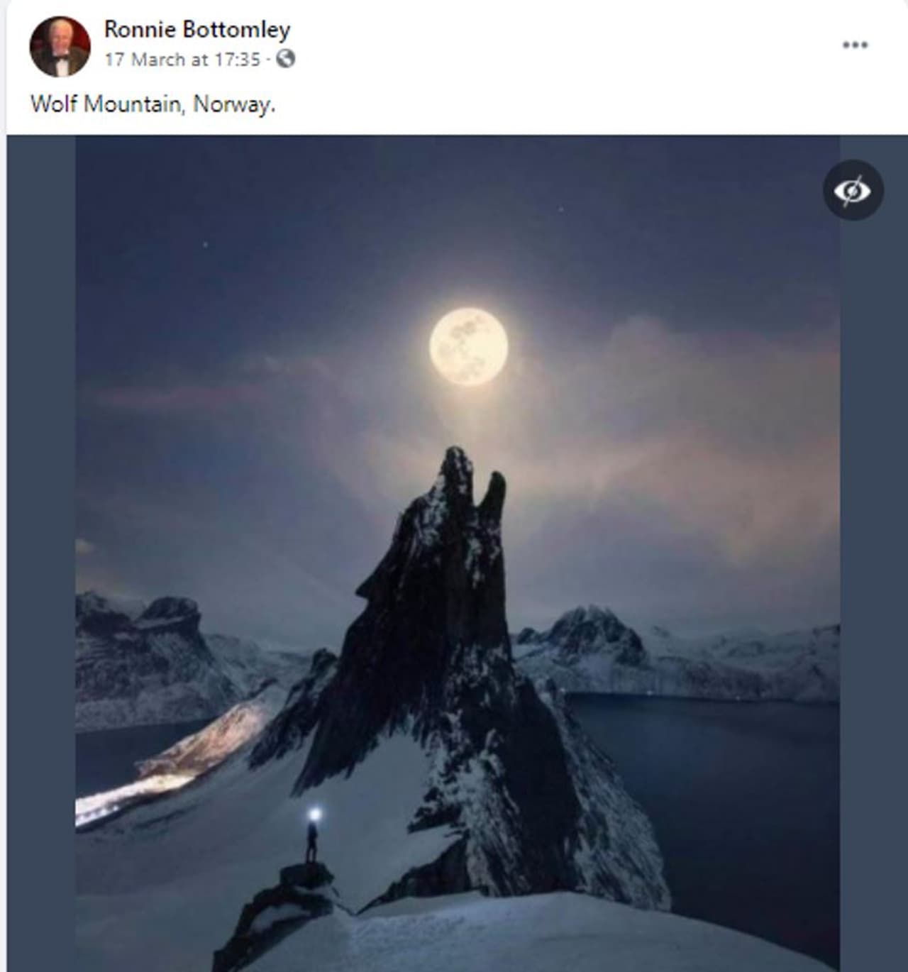 फेसबुक यूजर Ronnie Bottomley ने यह तस्वीर पोस्ट करते हुए कैप्शन में लिखा: वुल्फ माउंटेन, नॉर्वे।