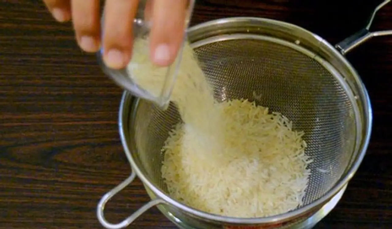 आधे घंटे बाद चावल से पानी को अलग कर दें। चावल को चाहें तो किसी थाली में फैला कर बिछा दें।