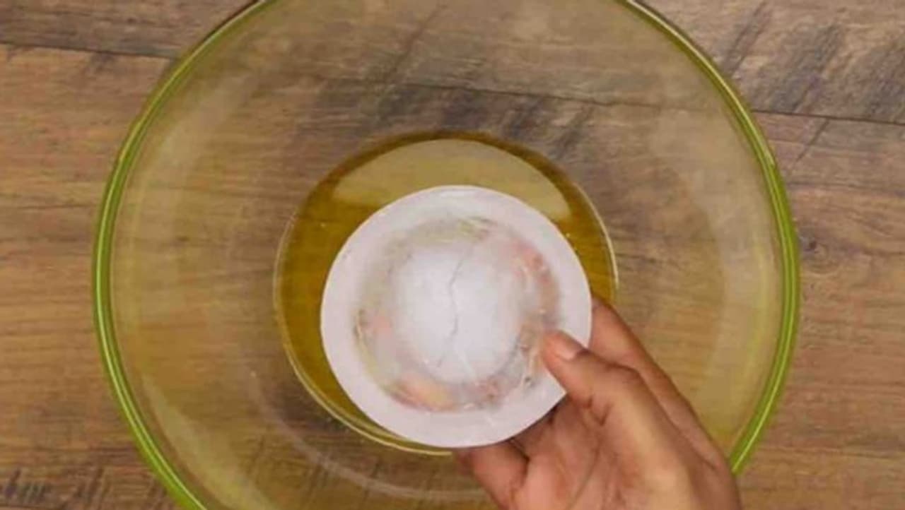 घेवर बनाने के लिए सबसे पहले आधा कप घी लें और इसे एक चौड़े और बड़े बर्तन में निकाल लें। फिर इसे बर्फ के टुकड़े से मलें।