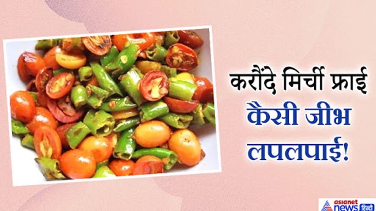 फूड डेस्क. Karonde Mirchi Fry Recipe In Hindi: करौंदे मिर्ची फ्राई नाम सुनते ही जैसे मुंह में पानी आ जाता है। पर ये घर में बनाना उतना मुश्किल नहीं है जैसा आप कल्पना कर रहे हैं। करौंदे गर्मी के मौसम में मिलने वाली एक बहुत ही कलरफुल सब्जी है, जिसमें अधिक मात्रा में पौषक तत्व जैसे- विटामिन C, आयरन आदि पाये जाते है। करौंदा स्वाद में बहुत ही खट्टा होता है। इससे हम अलग अलग तरह की बहुत सी डिश जैसे- करौंदे की चटनी, करौंदे का अचार, करौंदे वाली दाल, करौंदे का जैम, करौंदे की लौंजी, करौंदे मिर्ची फ्राई आदि बनाकर तैयार कर सकते हैं। इसलिए आज हम आपसे करौंदे की एक बहुत ही आसान कम मसालों के साथ कम समय में बनने वाली डिश बता रहे हैं। हम आपके साथ करौंदे मिर्ची फ्राई बनाने की विधि (Cranberry Mirchi Fry Recipe) शेयर कर रहे हैं जिसे आप लंच या डिनर में अरहर दाल के साथ साइड डिश की तरह से बनाकर सर्व कर सकते हैं।