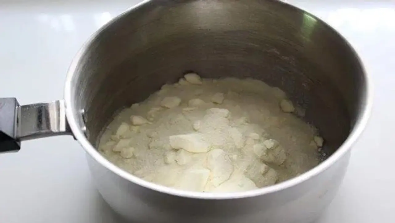 मिल्क पाउडर से दही जमाने के लिए सबसे पहले एक सॉस पैन में मिल्क पाउडर और पानी लें और अच्छी तरह से मिलाएं (याद रखें कि इसमें लम्स (गाठे) नहीं होने चाहिए।)