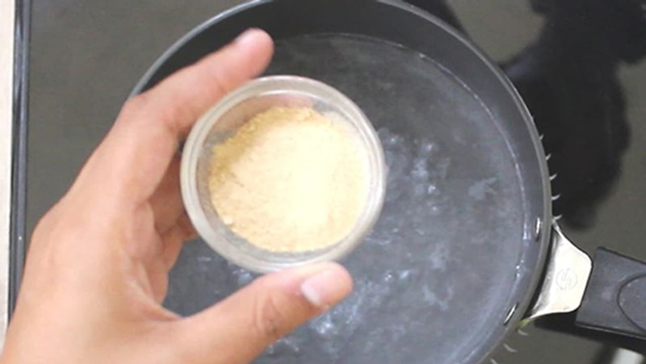 इस सिरप को बनाने के लिए सबसे पहले एक पैन में 1/2 कप पानी गर्म करें। अब अदरक या सोंठ पाउडर डालें और कुछ मिनट तक पकाएं।
