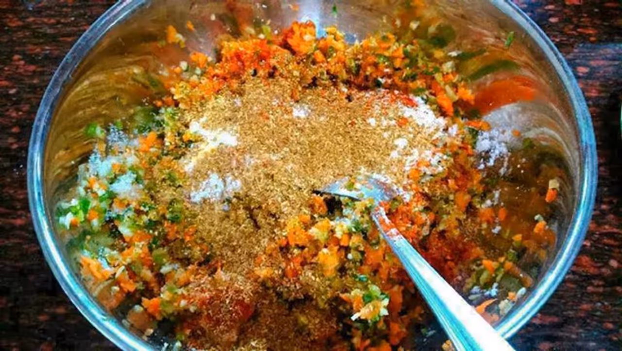 बिना तेली वाली मंचूरियन बनाने के लिए सबसे पहले सभी सब्जियां धो लें। बारीक कटा लें या कद्दूकस कर लें। इसके बाद सभी कद्दूकस की हुई सब्जियों को एक बाउल में डालें। सभी सूखी सामग्री डालें।