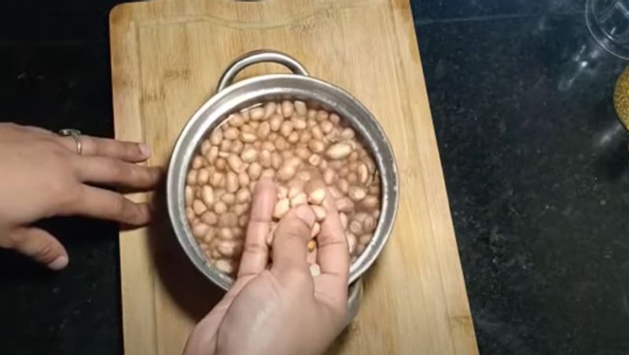 मूंगफली से पनीर बनाने के लिए सबसे पहले मूंगफली को रात भर या 8-10 घंटे के लिए पानी में भिगो दें। फिर इसे छलनी में डाल कर धो लीजिए। (यदि आप चाहें तो मूंगफली को छिलका उतार सकते हैं या इस स्टेप को आप छोड़ भी सकते है)