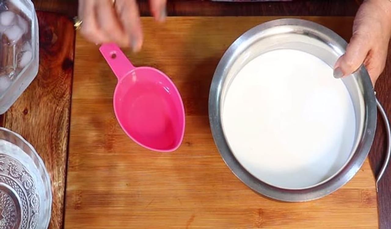 अब इसे बर्फ के पानी में डालें। इससे चीज को सेट होने में आसानी होगी। चीज को बर्फ के पानी में छोड़ दें। चीज में मौजूद दूध का बाकी पार्ट अलग हो जाएगा। इस दौरान सिरके की खटास भी कम होगी।