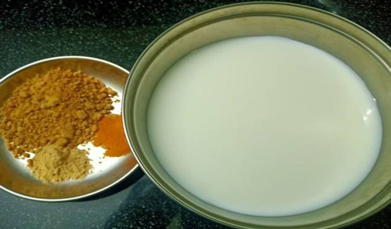 सबसे पहले कच्चे दूध में हल्दी मिलाएं। इसके बाद इसमें सोंठ का पाउडर मिलाएं।