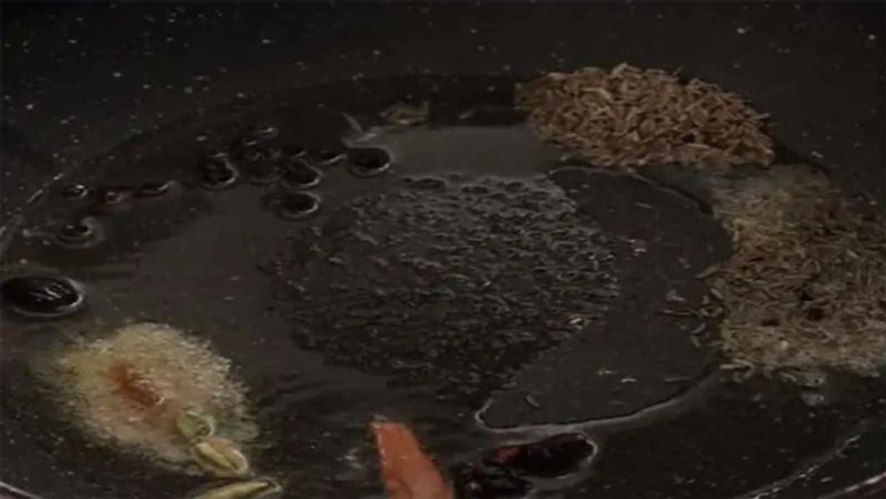 रेस्त्रां स्टाइल ग्रेवी रेडी करने के लिए सबसे पहले एक कड़ाही गर्म करें। उसमें दो चम्मच तेल डालें और फिर उसमें इसमें सारे खड़े गर्म मसाले डाल लें। इसके बाद इन्हें अच्छे से भूनें।