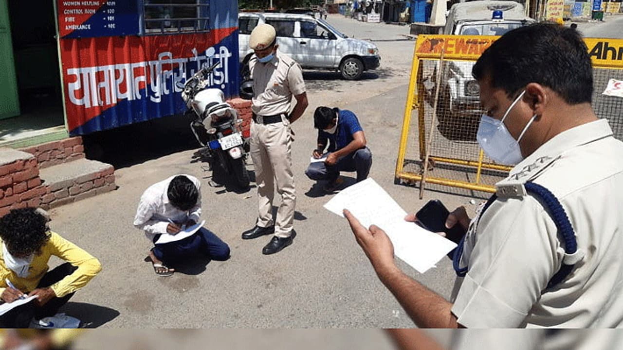 दरअसल, रेवाड़ी में जो भी युवक बेवजह घर से बाहर निकल रहा है तो पुलिस उससे वहीं माफीनामा लिखवा रही है। नियमों की धज्जियां उड़ाने वालों को पहले पुलिस परीक्षा केंद्र की तरह सड़क पर बैठाती है। फिर उनको एक कॉपी-पेन देकर लिखित माफीनामा लिखवाया।