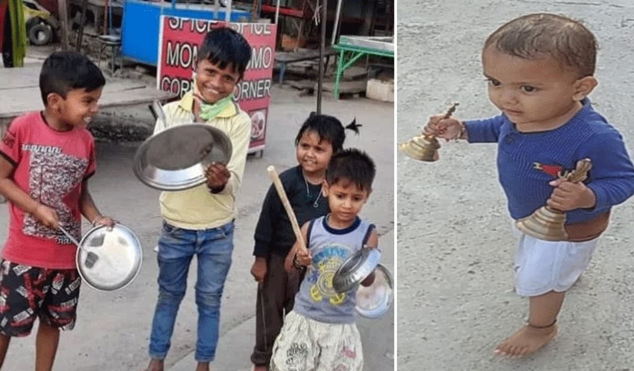 तस्वीरों में देखें कैसे बच्चों ने जनता कर्फ्यू का किया स्वागत, मासूम ने सड़क पर आकर यूं बजाई घंटी