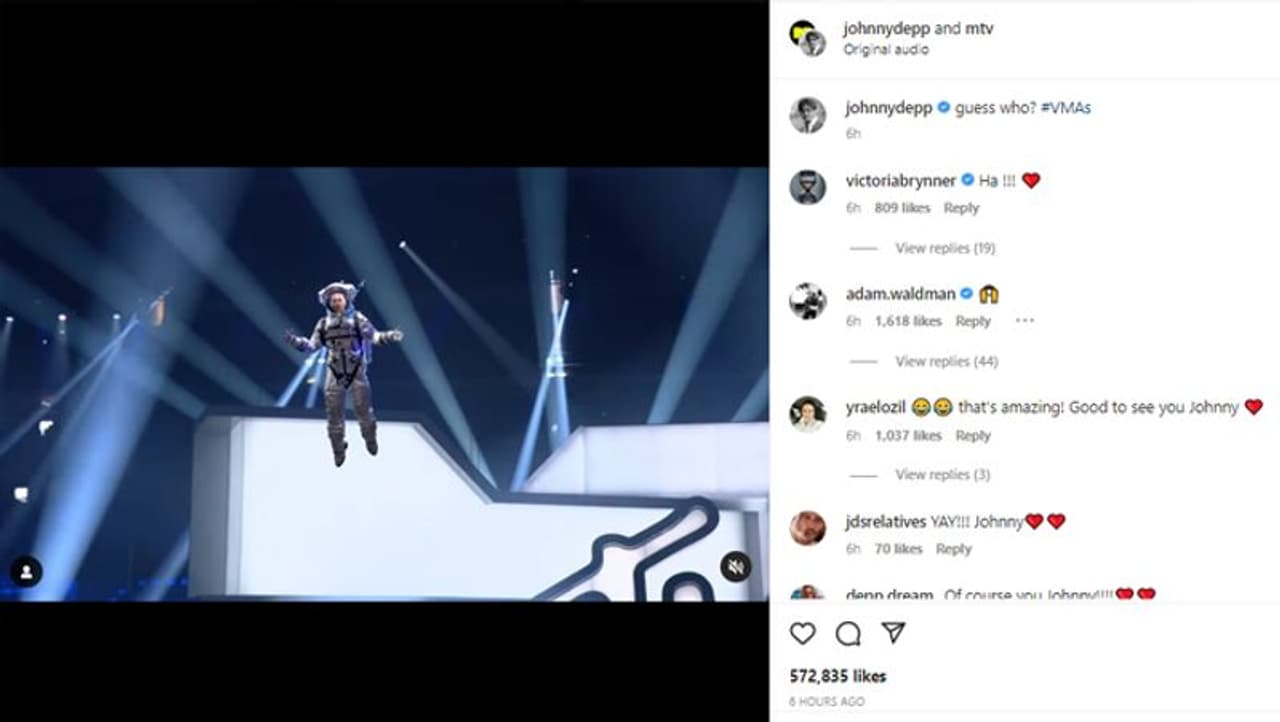 वीडियो में देखा जा सकता है कि जॉनी का चेहरा एक अंतरिक्ष यानी के हेलमेट के अंदर डिजिटल रूप से लगाईं गई थी, जो वीडियो म्यूजिक अवॉर्ड मून पर्सन स्टैच्यू के लिए इंस्पिरेशन था। जैक हार्लो, फैर्जी और लीजो के परफॉर्मेंस के बाद जॉनी प्रुडेंशियल सेंटर एरिया के ऊपर डिजिटली उड़ते हुए दिखाई दिए। उन्होंने इस दौरान कहा, "ओह वीएमए (वीडियो म्यूजिक अवॉर्ड) चलो संगीत पर वापस आते हैं। क्या हम आ सकते हैं?" बाद में उन्होंने अपने एक बयान में कहा, "आप इसे कुछ भी नाम दीजिए। अरे..मैं एक डेंटिस्ट भी हूं।"