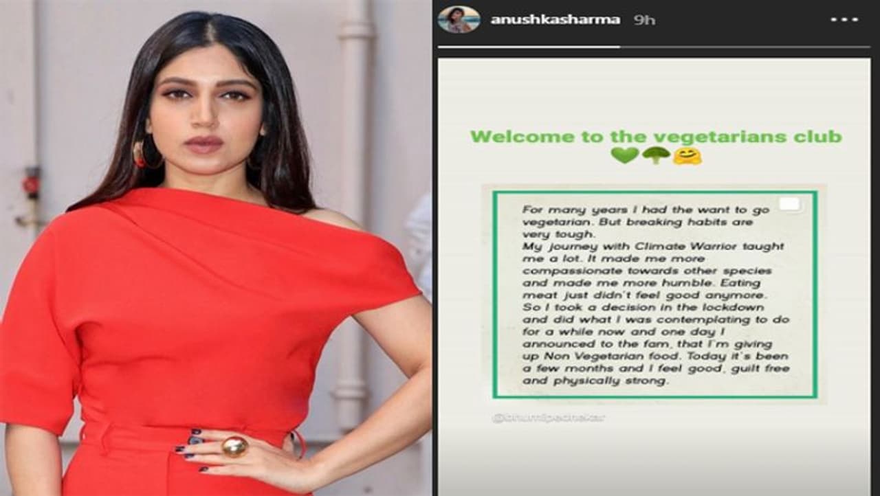दरअसल, अनुष्का ने भूमि का एक पोस्ट अपनी इंस्टा स्टोरी पर शेयर किया है, जिसमें भूमि बता रही हैं कि कई सालों से मुझे वेजिटेरियन बनने की इच्छा थी और अब मैंने पूरी तरह नॉनवेज छोड़ दिया है।
