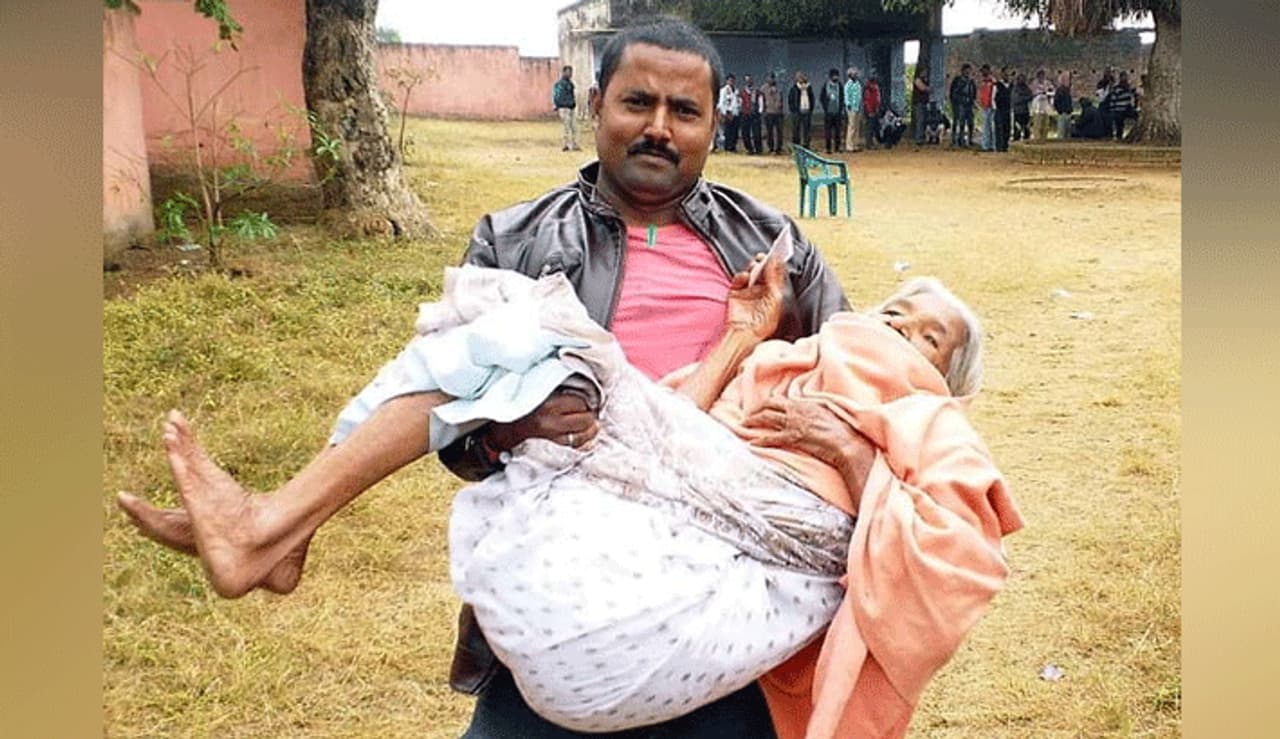 झारखंड में बाघमारा के मतदान केंद्र 3 की 94 साला की वोटर तारा देव्या ने वोट डालने की अपने घरवालों से जिद पकड़ रखी थी। परिजनों ने तारा को गोद में लेकर मतदान कराया गया।