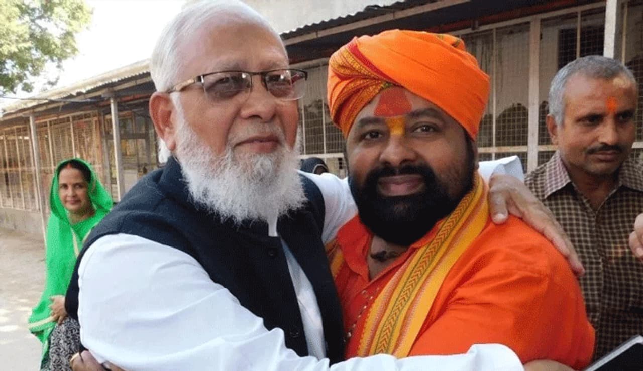 यह फोटो एमपी के भिड से सामने आई है। जहां शहर काजी इरफान नबी और वन खंडेश्रर मंदिर के पुजारी ने गले लगकर बधाई दी और एक-दूसरे को मिठाई खिलाई।