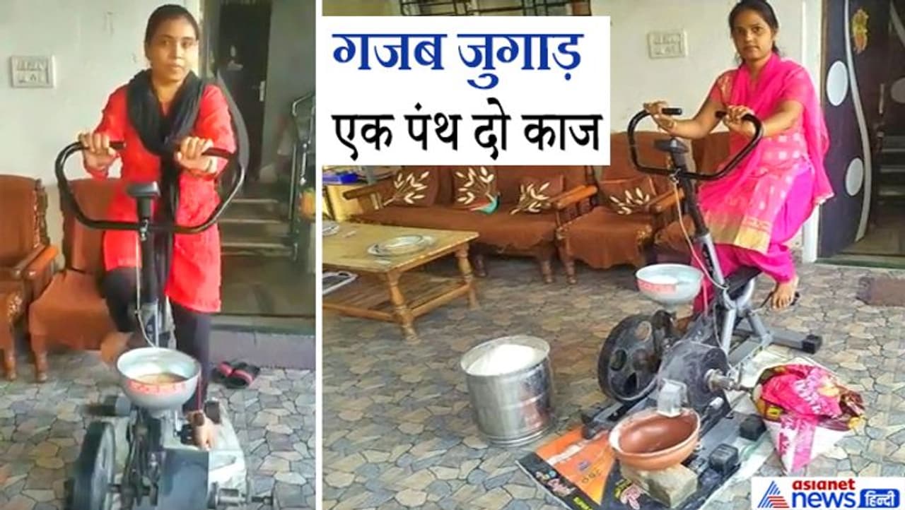 • कबाड़ से गजब जुगाड़: साइकिल और बेकार पड़ीं चीजों से महिला ने बना दी स्पेशल चक्की