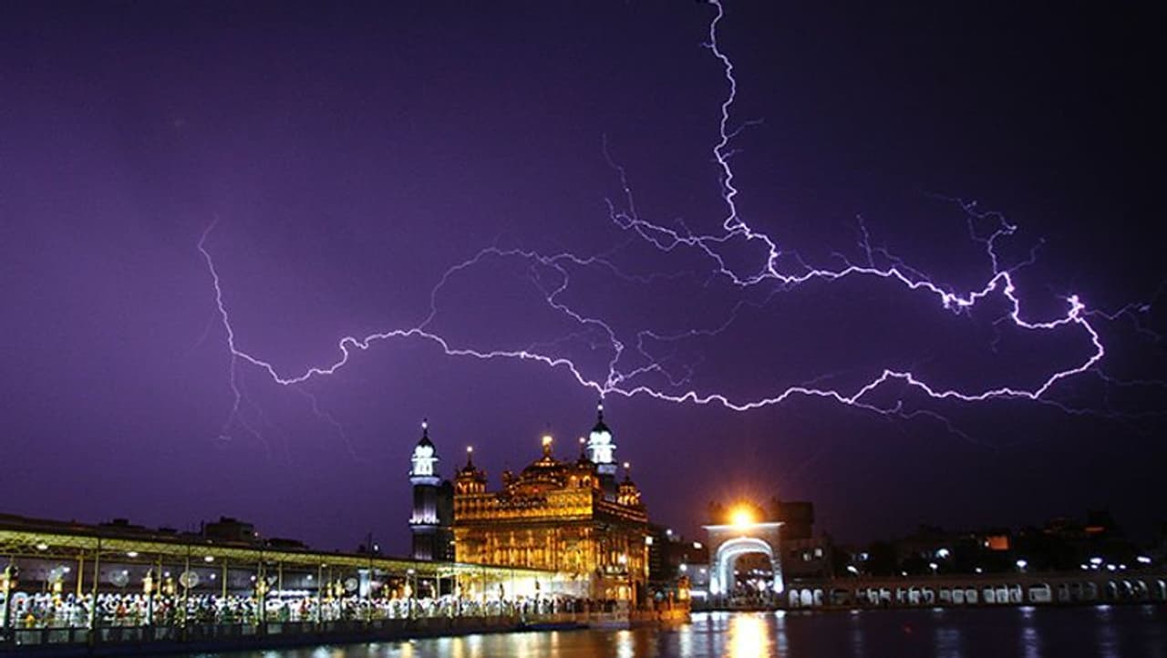 आकाशीय बिजली एक इलेक्ट्रिक डिस्चार्ज है। पानी के जो कण बादलों में ऊपर चले जाते हैं, तो वहां तापमान कम होने से पॉजिटिव चार्ज में बदल जाते हैं। वहीं, जो भारी कण नीचे रह जाते हैं। ये तापमान अधिक होने से निगेटिव चार्ज में बदल जाते हैं। जब ये दोनों आपस में टकराते हैं, तो बिजली कड़कती है। हालांकि ज्यादातर डिस्चार्ज बादलों में ही बनकर खत्म हो जाता है। कुछ ही धरती पर गिरता है। यह तस्वीर अमृतसर की है। स्वर्ण मंदिर के ऊपर से गरजती बिजली। 29 अप्रैल, 2012।