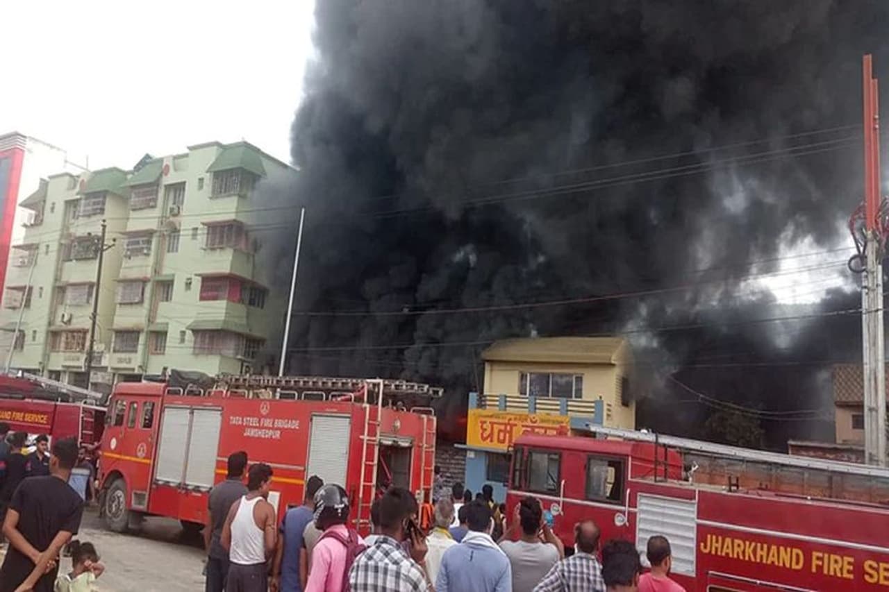 - जमशेदपुर में आग से तबाही की तस्वीरें : 12 घंटे बाद भी टायर गोदाम से उठ रहा धुएं का गुबार, सांस लेने में तकलीफ