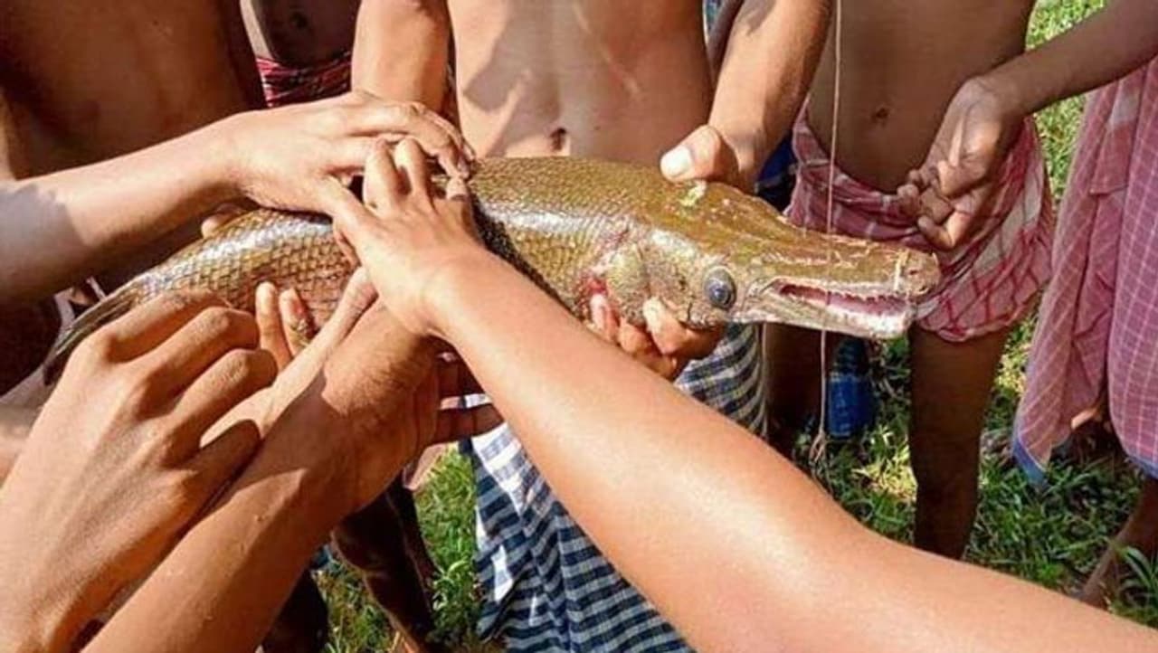 मछुआरे का कहना था कि जाल में जो मछली देखी, उससे सबकी आंखें फटी की फटी रह गईं। इसका धड़ मछली का और मुंह मगरमच्छ जैसा है। जब ग्रामीणों ने एक लकड़ी का टुकड़ा उसके मुंह में डाला तो एक ही झटके में उस मगरमच्छ जैसे मुंह वाली मछली ने उसके टुकड़े कर दिए।