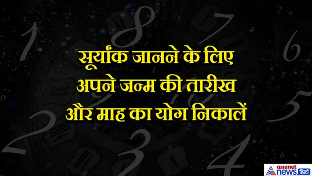 अपना सूर्यांक जानने के लिए अपने जन्म की तारीख और माह का योग निकालें। उदाहरण के तौर पर अगर आपका जन्म 23 मई को हुआ है तो आपका सूर्यांक हुआ 23+5 = 28 (2+8= 10 =1) । यानि आपका सूर्यांक हुआ 1। इसी तरह से आप अपना सूर्यांक निकाल सकते हैं। आगे सूर्यांक से जानिए नेचर और फ्यूचर