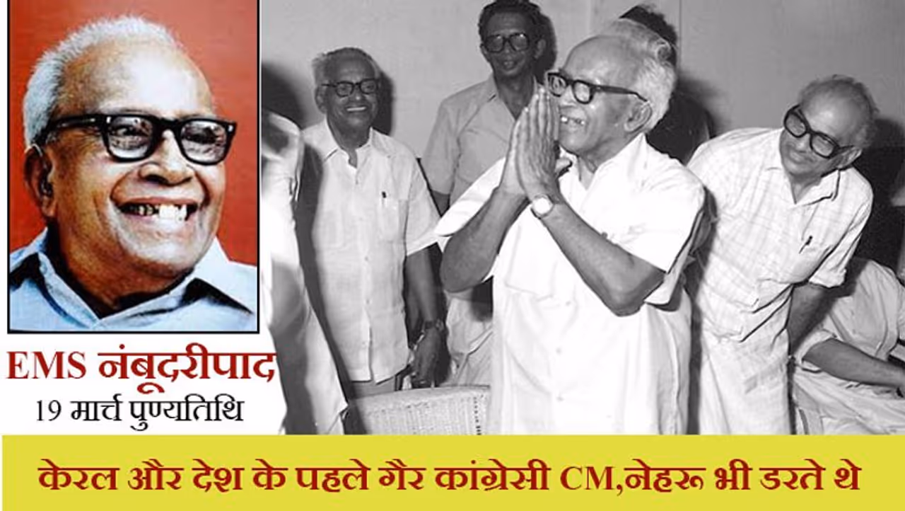 कहते हैं राजनीति में दोस्तों में दुश्मनी और दुश्मनों के बीच दोस्ती होना कोई हैरानी वाली बात नहीं है। पांच राज्यों में होने जा रहे इलेक्शन में कांग्रेस पश्चिम बंगाल और असम में वामदलों के साथ मिलकर चुनाव लड़ रही है। जबकि केरल में कांग्रेस और वामदल अलग-अलग गठबंधन में चुनाव लड़ रहे हैं। यह दिलचस्प है कि केरल के पहले और गैर कांग्रेसी मुख्यमंत्री ईएमएस नंबूदरीपाद एक समय कांग्रेस के लिए खौफ का कारण बन गए थे। केरल के जरिये भारत में पहली कम्यूनिस्ट सरकार बनाने वाले नंबूदरीपाद से भारत के पहले प्रधानमंत्री पंडित जवाहरलाल नेहरू तक डरने लगे थे। नौबत यहां तक आई कि नेहरू ने अपने पद का इस्तेमाल करते हुए नंबूदरीपाद की सरकार को बर्खास्त कर दिया था। लेकिन राजनीति में समय एक-सा नहीं रहता। आज कांग्रेस वामपंथियों के साथ मिलकर भाजपा के खिलाफ खड़ी है। केरल में भले ही वो प्रत्यक्ष तौर पर वामपंथियों के साथ नहीं है, लेकिन उसका मकसद है कि राज्य में भाजपा की सरकार न बने। बाद में भले वामपंथियों के साथ मिलकर सरकार बनानी पड़े। बता दें कि 19 मार्च, 1988 को ईएमएस नंबूदरीपाद का निधन हुआ था। जानते हैं उनकी पुण्यतिथि पर कुछ बातें...