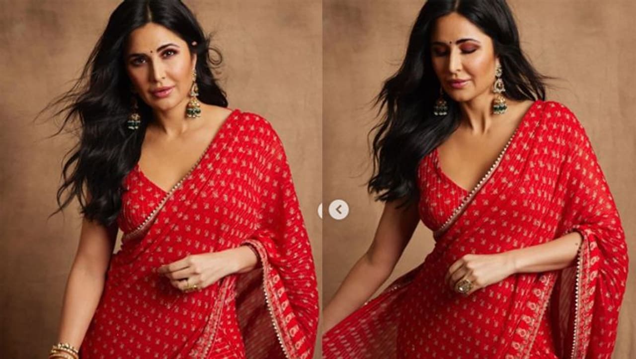 शादी के बाद जब नई नवेली दुल्हन लाल रंग का पहनकर निकलती है, तो बेहद ही खूबसूरत लगती है। ऐसे में आप अपनी पहली लोहड़ी पर लाल रंग की खूबसूरत सी साड़ी कैरी कर सकते हैं। जिस तरह से इन तस्वीरों में कैटरीना कैफ ने लाल कलर की छोटे प्रिंट वाली जॉर्जेट की साड़ी कैरी की है। उसके साथ केवल ग्रीनस्टोन वाले बड़े इयररिंग और हाथ में कुछ चूड़ियां डाली हुई है।