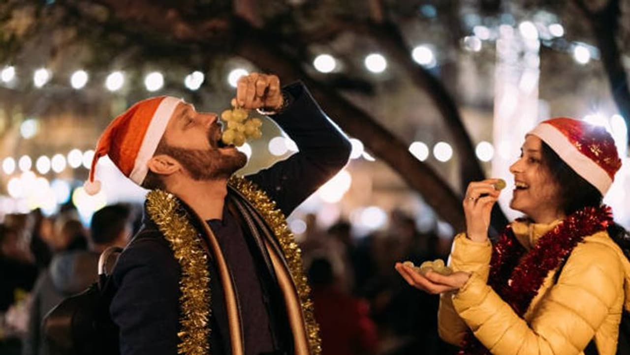 न्यू ईयर के मौके पर स्पेन में आधी रात को 12 अंगूर खाने का चलन है। इसका मतलब यह होता है कि आने वाले नए साल में 1 महीने तक गुडलक रहता है। स्पेन के मैड्रिड और बार्सिलोना जैसे शहरों में लोग मेन स्क्वेयर पर एक साथ अंगूर खाते हैं।