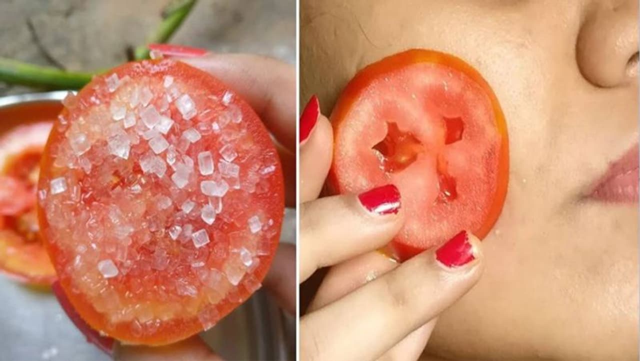टमाटर के ऊपर चीनी डालकर चेहरे पर रगड़ने से डेड स्किन सेल्स निकल जाती है और चेहरे पर निखार आता है।