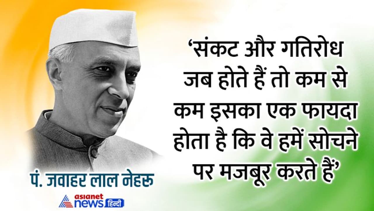 "संकट और गतिरोध जब होते हैं तो कम से कम इसका एक फायदा होता है कि वे हमें सोचने पर मजबूर करते हैं।"- जवाहर लाल नेहरू