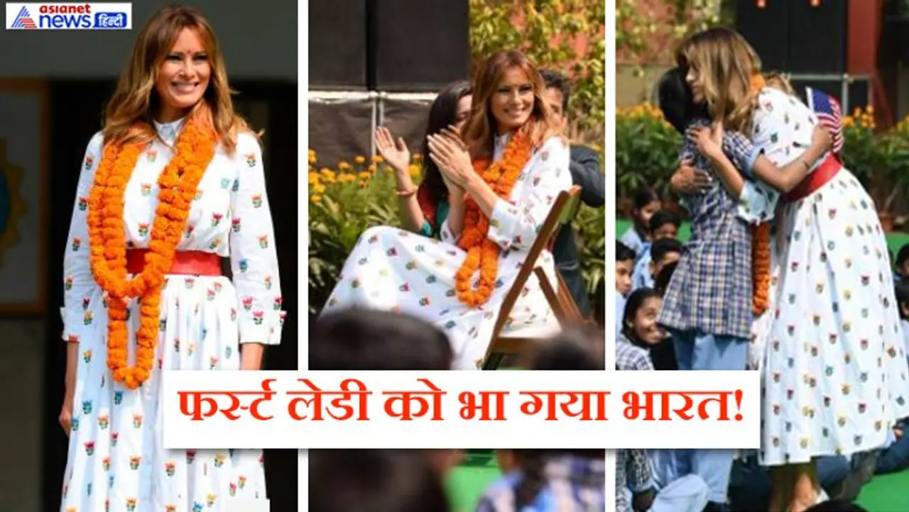 व्हाइट फ्लोरल गाउन में मेलानिया काफी खूबसूरत लग रही थीं। गले में फूलों की माला डाले और माथे पर तिलक लगाकर मेलानिया दिल्ली के सरकारी स्कूल के बच्चों के साथ बातचीत करती नजर आईं। उन्होंने हैप्पीनेस क्लास के बारे में जाना और बच्चों के साथ जमकर मस्ती की। मेलानिया का सादगी और जमीं से जुड़ा व्यवहार लोगों को पसंद आया।