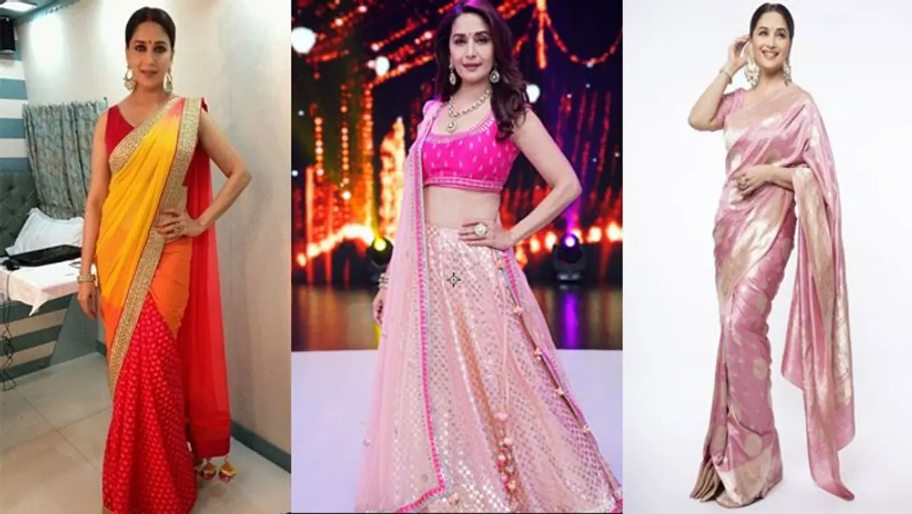नवरात्रि से लेकर दिवाली तक दिखना है सबसे अलग, तो माधुरी दीक्षित के इन लहंगा और साड़ी डिजाइन से लें इंस्पिरेशन