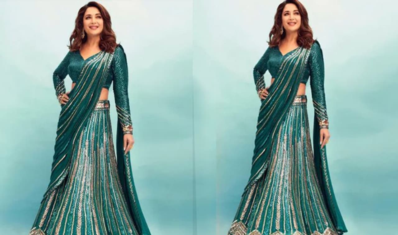 धक-धक गर्ल माधुरी दीक्षित इंडियन आउटफिट में बहुत ही खूबसूरत लगती हैं। साड़ी हो या फिर लहंगा वो हर आउटफिट में लोगों को दीवान बना देती हैं। अगर आप सबसे अलग दिखाना चाहती हैं तो एक्ट्रेस के इस लहंगा चोली से इंस्पिरेशन ले सकती हैं। बॉटल ग्रीन कलर के लहंगे के साथ अपने बालों को खुला रख सकती हैं। लाइट मेकअप से लुक्स को कंप्लीट कर सकती हैं।