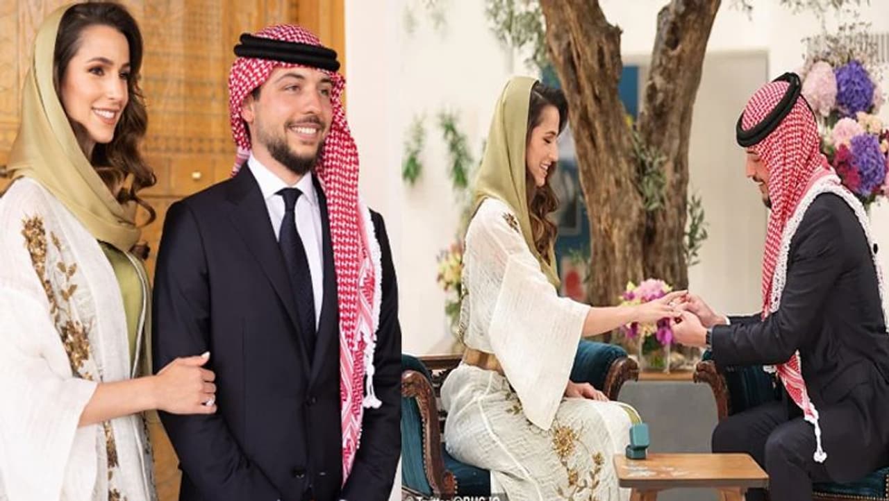 जॉर्डन के रॉयल हाशमाइट कोर्ट के आधिकारिक ट्विटर अकाउंट ने सगाई की तस्वीरें पोस्ट कीं, जो रियाद में अल सैफ के पिता के घर पर हुई थी।