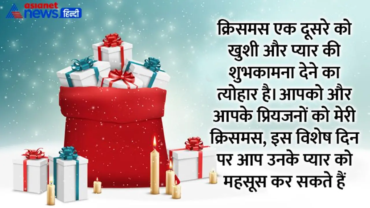 क्रिसमस एक दूसरे को खुशी और प्यार की शुभकामना देने का त्योहार है। आपको और आपके प्रियजनों को मेरी क्रिसमस, इस विशेष दिन पर आप उनके प्यार को महसूस कर सकते हैं।